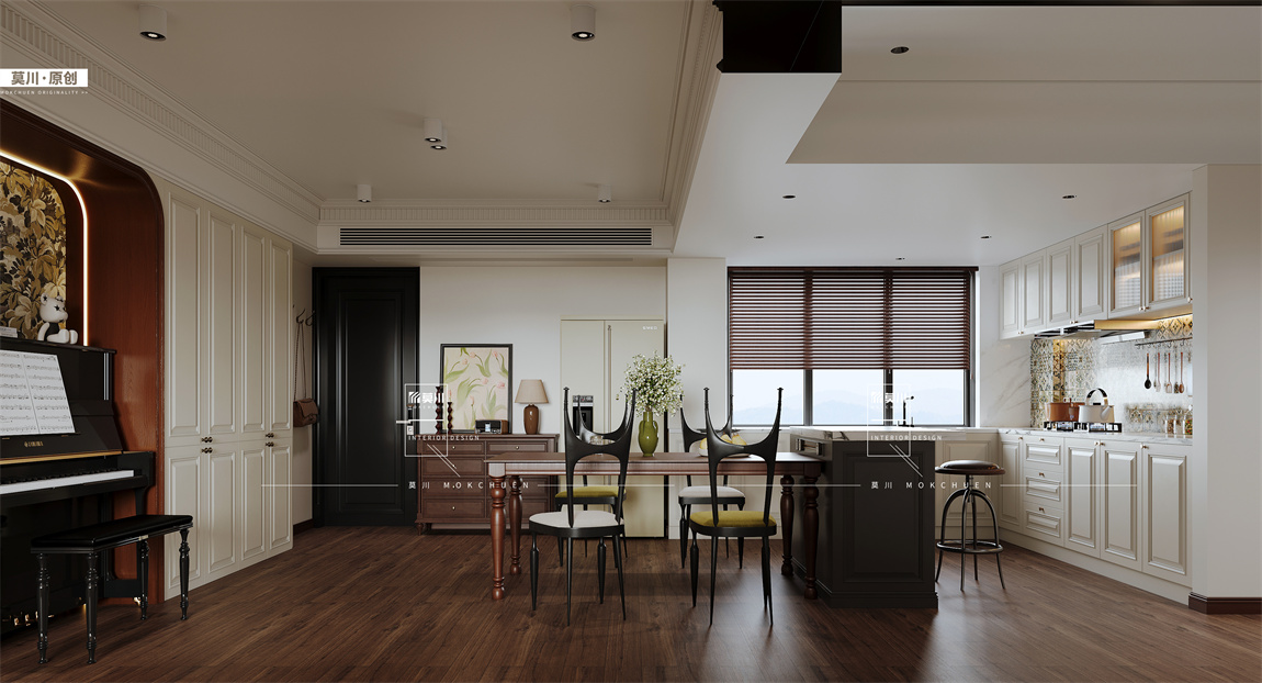 本案例為舊改案例,通過改造后,不僅解決原來房子采光通風差、動線不流暢的問題,結合的開放式廚房,讓公共區域擁有超大平層的視野感,溫馨、浪漫,房間的每一處都充滿溫馨浪漫的氣息