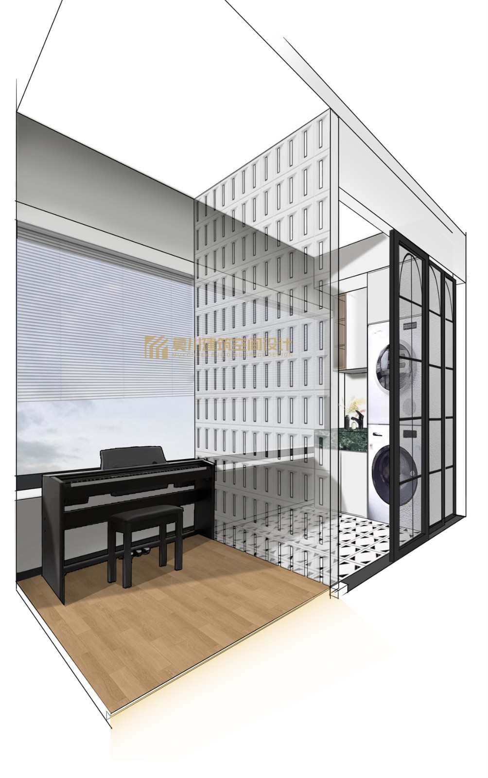 合理利用洗衣陽臺,利用構建磚與陽光的接觸,形成陣列的光斑,給入戶區增加儀式感,增加雜物間功能,開放式廚房和封窗讓原本就巨大的客餐廳更加大,同時搭配裝飾線條再次拉伸整個空間,再次拉伸空間視覺尺度,原本的生活陽臺,做成瑜伽區,休閑娛樂結合,主衛的空間擴大,提升生活品質,增加衣帽間和電競房結合的空間.